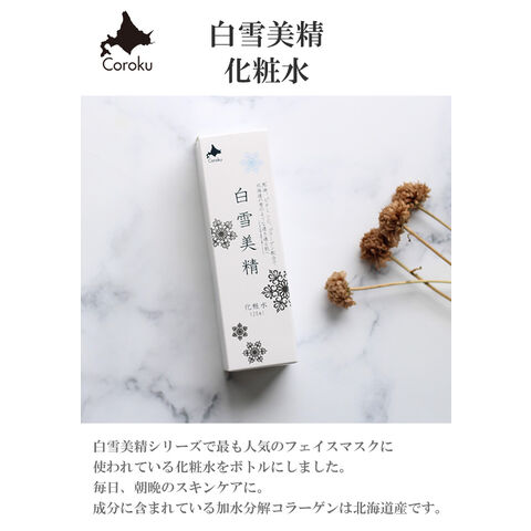 白雪美精シリーズで最も人気のフェイスマスクに使われている化粧水をボトルにしました。毎日、朝晩のスキンケアに。
