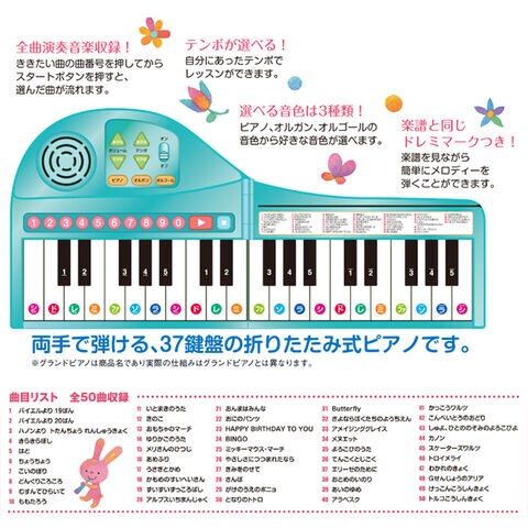 両手で弾ける37鍵盤の折りたたみ式ピアノ。