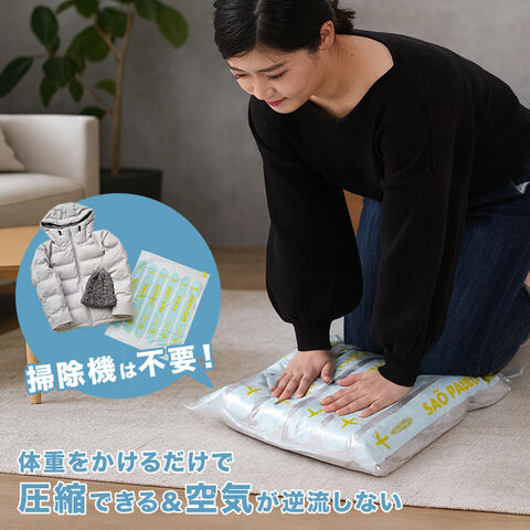 衣替え・旅行・引っ越しに!省スペースで、押すだけ簡単の圧縮袋です。