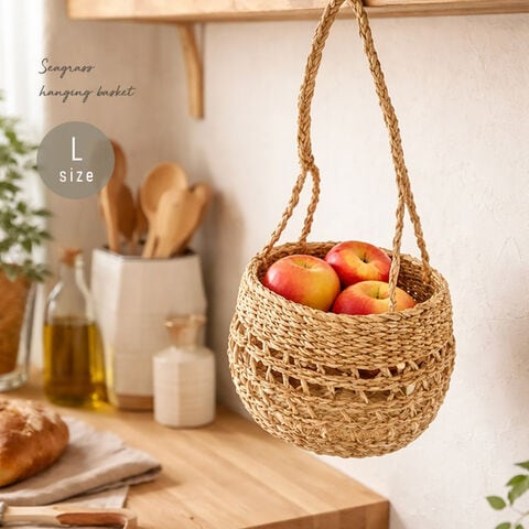 素朴な風合いが味わい深い シーグラスのハンギングバスケット L(吊り下げ プランター シーグラス 天然 バスケット カゴ)