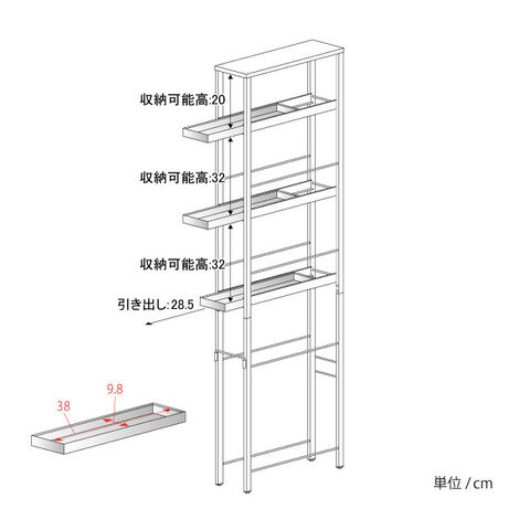 【サイズ(約)】[本体]幅12.8×奥行41×高さ160cm [引出収納内寸] 1段目:幅10×奥行38×高さ20cm/2・3段目:幅10×奥行38×高さ32cm