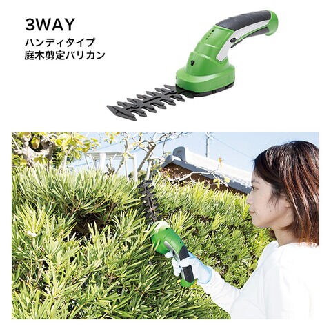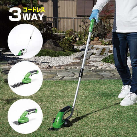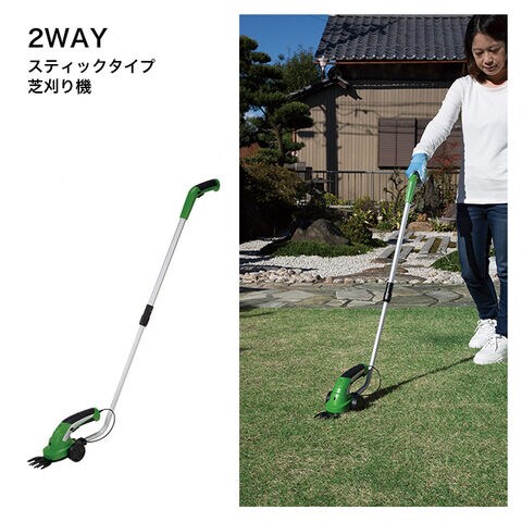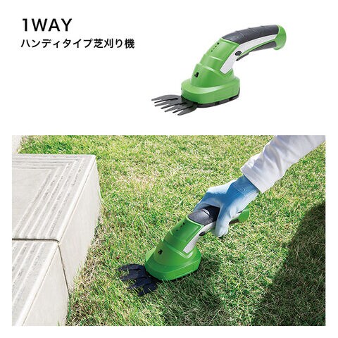 ハンディタイプ芝刈り機、スティックタイプ芝刈り機、ハンディタイプ庭木剪定バリカンとしてお使いいただけます。