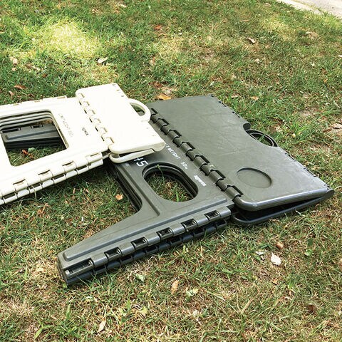 軽くて丈夫な素材を使用。折りたたむと平たくなるので、車に積んでもスペースを取らず、室内では家具の隙間に片付けておくことができます。