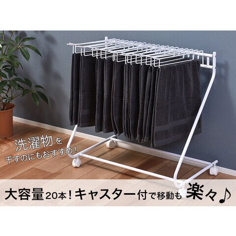 省スペースにたっぷり収納できる大容量のハンガーラック。パンツ類を20本掛けることができます。