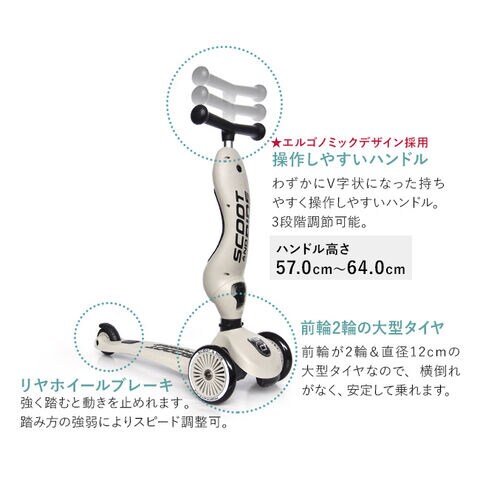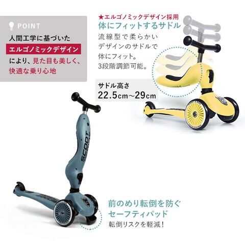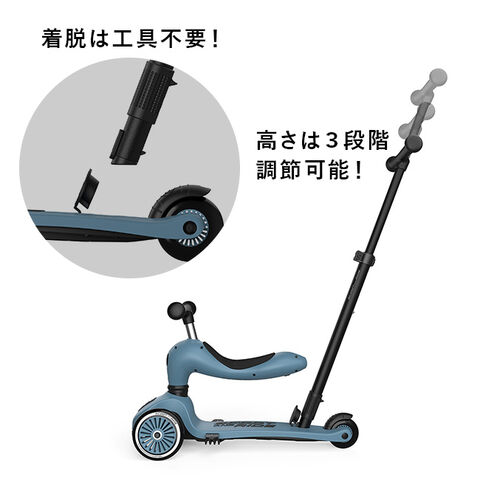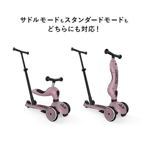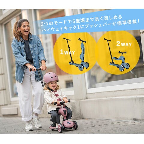 ハイウェイキック1は2つのモードが楽しめるキッズスクーター。スクーターデビューにぴったりの1台です。