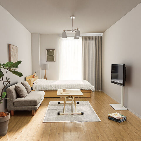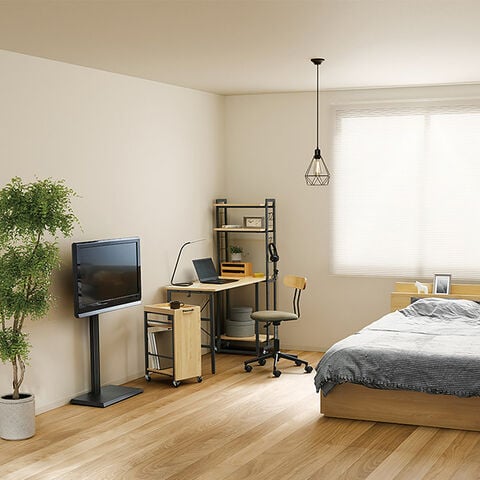 リビングはもちろん、寝室やダイニングにも壁掛け風にすっきり設置でき、お部屋を広々と開放的に見せます。