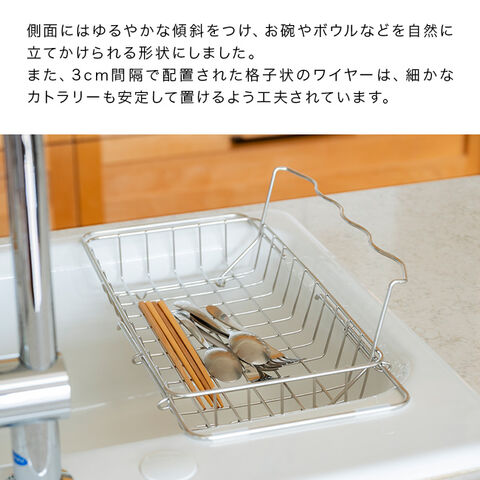 すっきり暮らす 立てかけられるシンク渡し水切り(水切りラック 伸縮 水切りかご 折りたたみ ステンレス 燕三条 日本製)