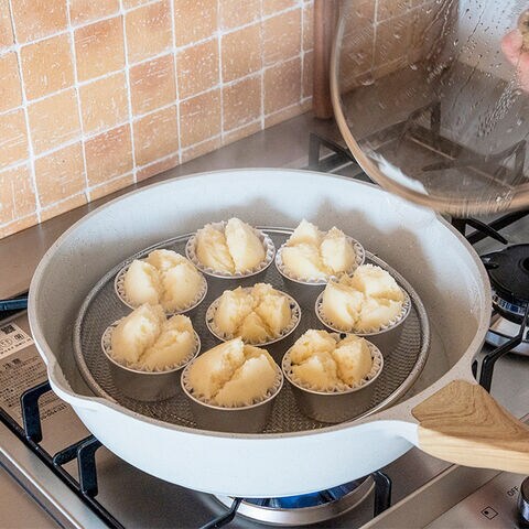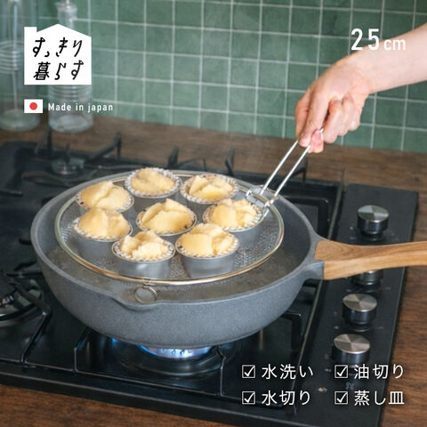 ・取っ手がないため鍋やフライパンにスッと収まり、蒸し台としても活躍。