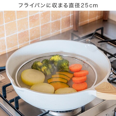 ・「すっきり暮らす盆ざる25cm」は28cmフライパンに対応。