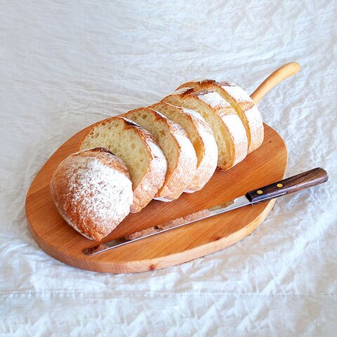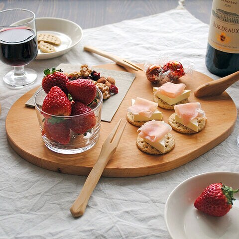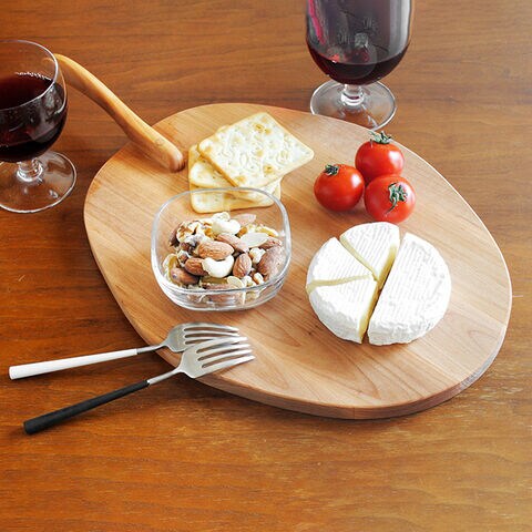 食品のカットから盛り付けまで、多用途に使える一品。気軽に使えるサブのまな板として便利です。一番の特徴は、ボードに取り付けられたハンドル。食材をのせたままテーブルまで運びやすいところが◎