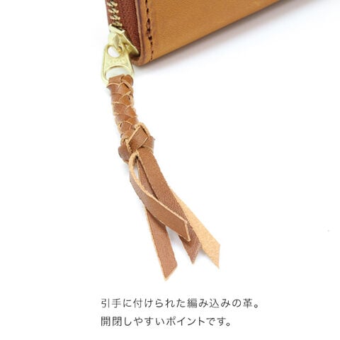 カードポケットは整理整頓しやすく、中身が見やすい仕様。YKK別注ファスナーでスムーズな開閉を実現し、引手には編み込みレザーを採用して使いやすさを追求。ユニセックスなデザインで、男女問わずギフトにも最適!