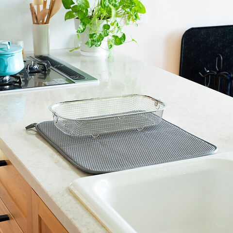 ●ポリエステル100%の厚手マットが、食器や調理器具から出る水分を素早く吸収。