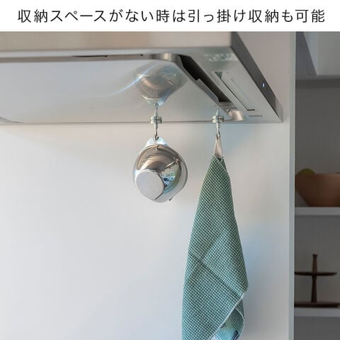 ・穴付きで吊り下げ収納もでき、キッチンが整う。