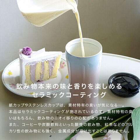 ●内側にセラミックコーティングを採用。金属臭や匂い移りがなく、ドリンク本来の風味をしっかり楽しめます。