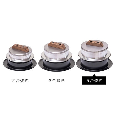 【素材】[蓋]ステンレス鋼、天然木 [釜]アルミニウム合金(内側:セラミック塗膜加工、外面:施盤加工、つば下:耐熱焼付塗装) [かまど]アルミニウム合金(内側:焼付塗装、外面:セラミック塗膜加工)
