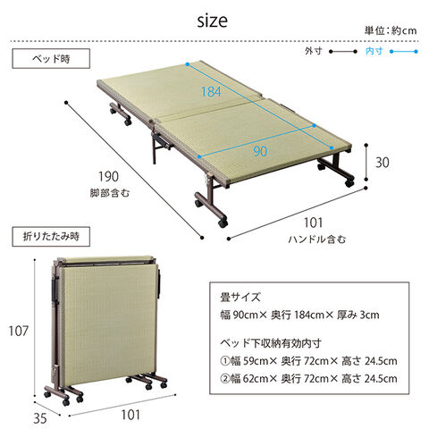 【サイズ(約)】[本体]幅101(ハンドル含む)×奥行190×高さ30cm [折畳時]幅101(ハンドル含む)×奥行35×高さ107cm