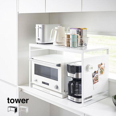 【ブラック 472451】【T】tower タワー スチールパネル付きレンジラック W75(山崎実業 キッチン 収納 レンジラック キッチン収納 幅60cm)(山崎実業)※1枚目の画像は代表イメージのため色・柄が異なる場合がございます。2枚目以降で色・柄をご確認下さい。