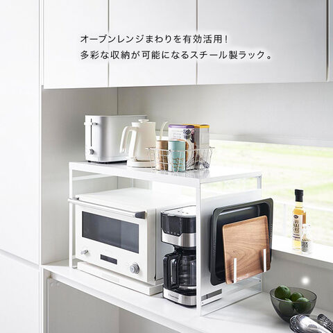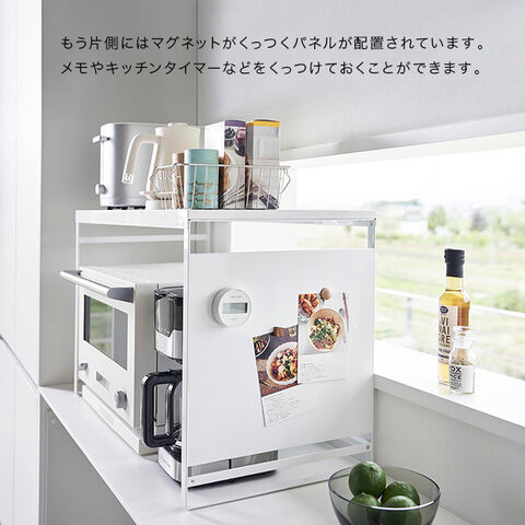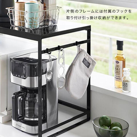 電子レンジやトースターを下に置いて、上にはコーヒー用品やミキサーなどが置けます。