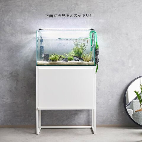 ●どんなインテリアにも馴染む洗練されたシンプル設計。フィルターやエサなどを目隠ししながら収納できるので、生活感を感じさせません。