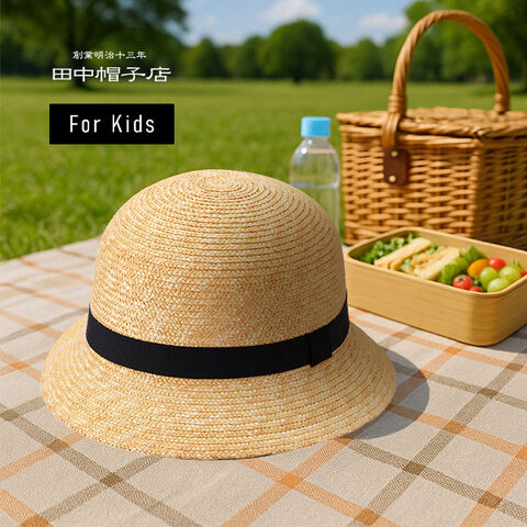 即納 【52cm】田中帽子店 Gland グラン UK-H010-GLBK(麦わら帽子 キッズ 子供 紐付き ゴム付き 男の子 女の子 かわいい 日よけ 子ども)※1枚目の画像は代表イメージのため色・柄が異なる場合がございます。2枚目以降で色・柄をご確認下さい。