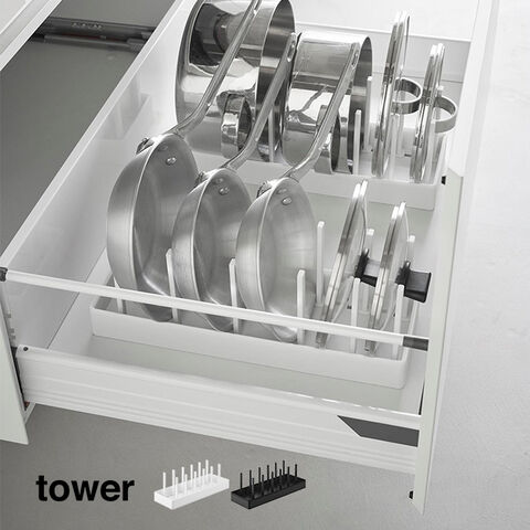 tower タワー シンク下幅調節鍋蓋&フライパン収納スタンド W40(シンク下 収納 鍋 フライパン収納 フランパン収納ラック)【ホワイト 480898】※1枚目の画像は代表イメージのため色・柄が異なる場合がございます。2枚目以降で色・柄をご確認下さい。