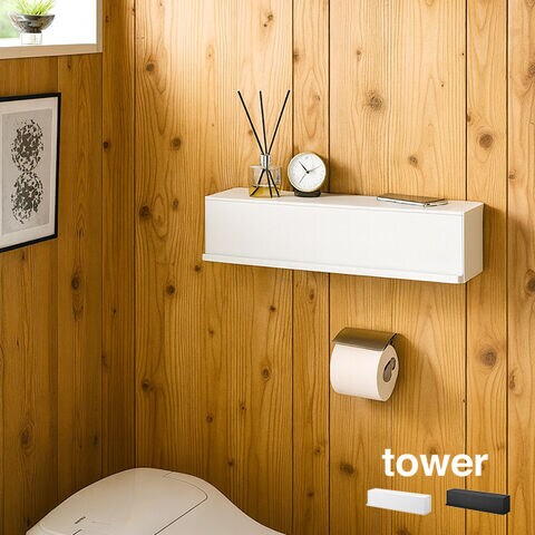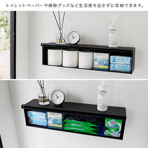 tower タワー ウォール隠せるトイレ壁収納 石こうボード壁対応(トイレ 収納 壁付け 棚 ウォールシェルフ トイレ収納)【ブラック 489603】※1枚目の画像は代表イメージのため色・柄が異なる場合がございます。2枚目以降で色・柄をご確認下さい。