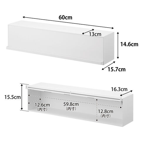 【サイズ(約)】[外寸]幅60×奥行15.7×高さ14.6cm [扉開口時]奥行16.3×高さ15.5cm [天板内寸]幅60×奥行13cm [収納部内寸]幅59.8×奥行12.6×高さ12.8cm(有効内寸・ローラー部含まず)