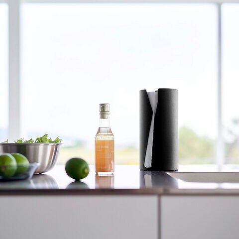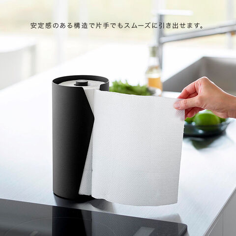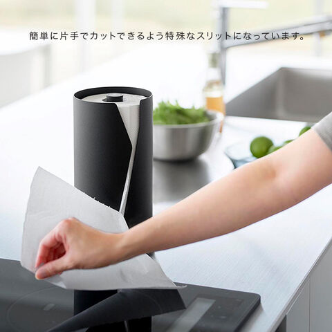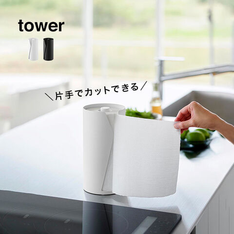 【ブラック 488434】 tower タワー 片手でカット隠せるキッチンペーパーホルダー 縦タイプ(片手で切れる 置き型 キッチンペーパーホルダー)※1枚目の画像は代表イメージのため色・柄が異なる場合がございます。2枚目以降で色・柄をご確認下さい。
