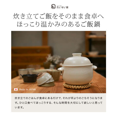 即納 【F】 【白】 たいせい窯 ごはん鍋 2合(萬古焼 ご飯鍋 土鍋 ごはん土鍋 おしゃれ かわいい 日本製 ガス ガス対応 電子レンジ対応) ※1枚目の画像は代表イメージのため色・柄が異なる場合がございます。2枚目以降で色・柄をご確認下さい。