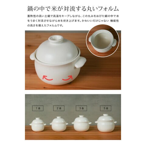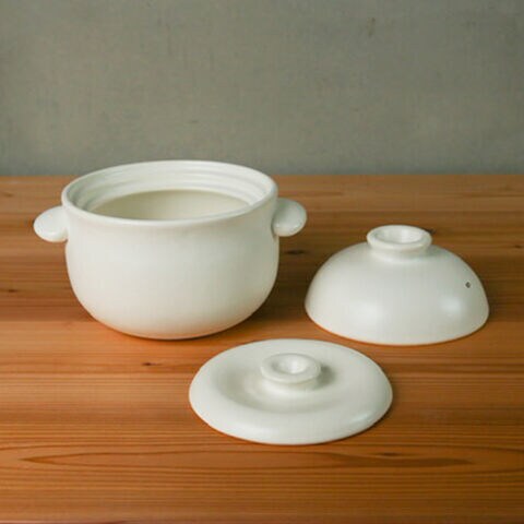 ぽってり可愛らしいフォルムと、温かみのある質感が魅力的な萬古焼のご飯鍋。