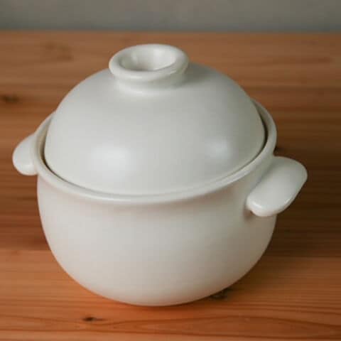ぽってり可愛らしいフォルムと、温かみのある質感が魅力的な萬古焼のご飯鍋。