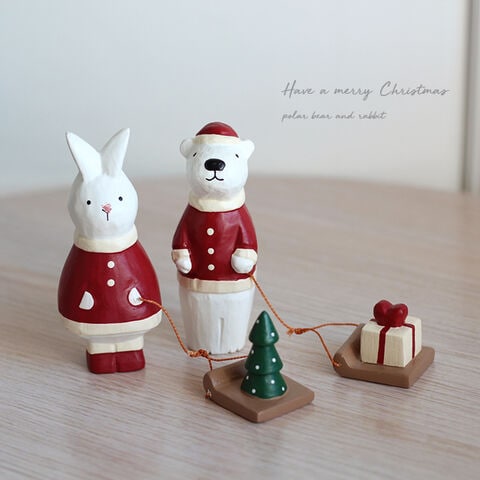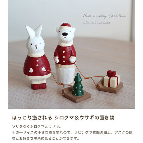 即納 【R07】 クリスマス置物 2点セット シロクマ ウサギ(クリスマス 置物 サンタ 雑貨 飾り オブジェ 北欧 風 クリスマスツリー) ※1枚目の画像は代表イメージのため色・柄が異なる場合がございます。2枚目以降で色・柄をご確認下さい。