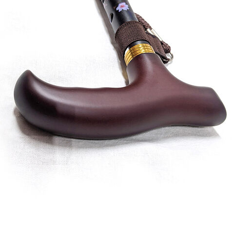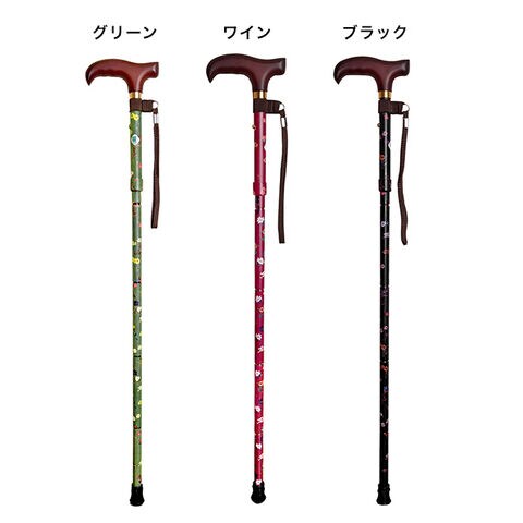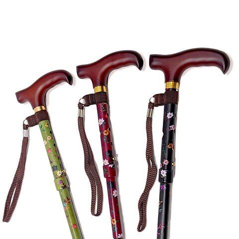 天然木グリップ 5段 折りたたみ式 花柄 ステッキ