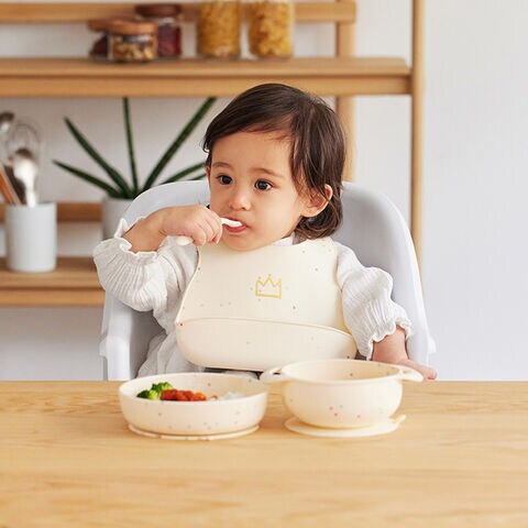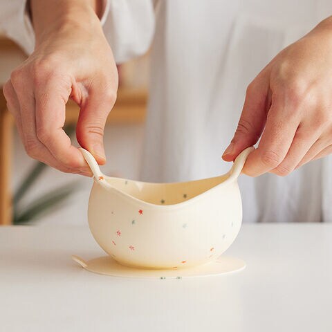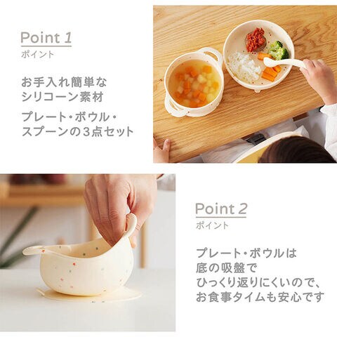 ●はじめての離乳食に安心。お手入れが簡単なシリコン素材