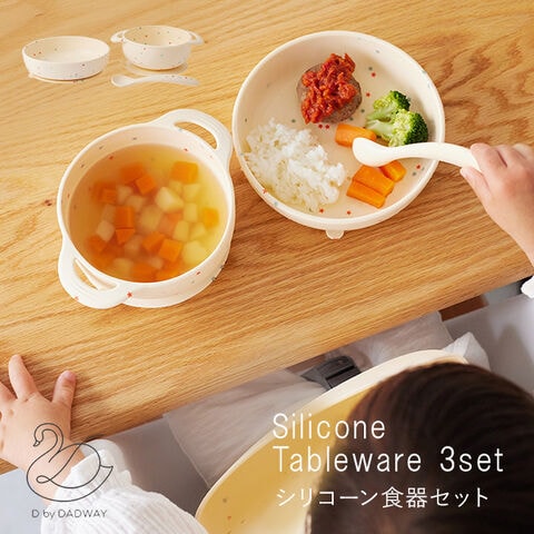 D by DADWAY シリコーン食器セット(ベビー食器 ベビー食器セット シリコン 皿 吸盤付き ベビー 食器 セット 子ども)