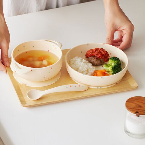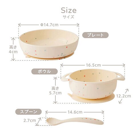 【仕様】[プレート・ボウル]食洗器○、電子レンジ○、薬液消毒○、煮沸消毒×、電子レンジ消毒× [スプーン]食洗器○、電子レンジ×、薬液消毒○、煮沸消毒×、電子レンジ消毒×