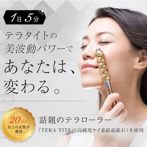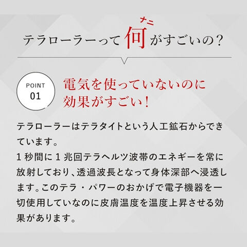 天然鉱石「テラタイト」(高純度ケイ素結晶鉱石)をローラー部分に採用した、美容ローラー。