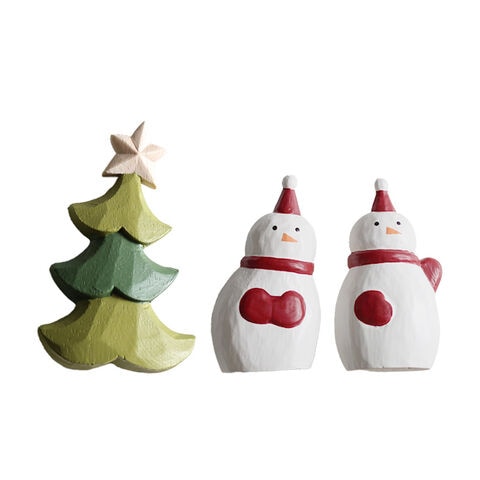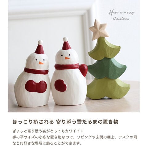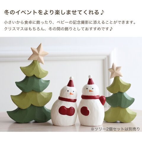 即納 クリスマス置物 3点セット 雪だるま2個&ツリーSS(クリスマス 木製 置物 クリスマスツリー ミニ ゆきだるま 冬 かわいい)