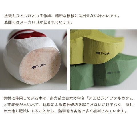 【備考】塗装には水性ペンキと水性ニスを使用しています(玩具安全[ST]基準の重金属安全基準値準拠)。水で拭いたり、なめたりすると塗装が剥げますのでご注意ください。