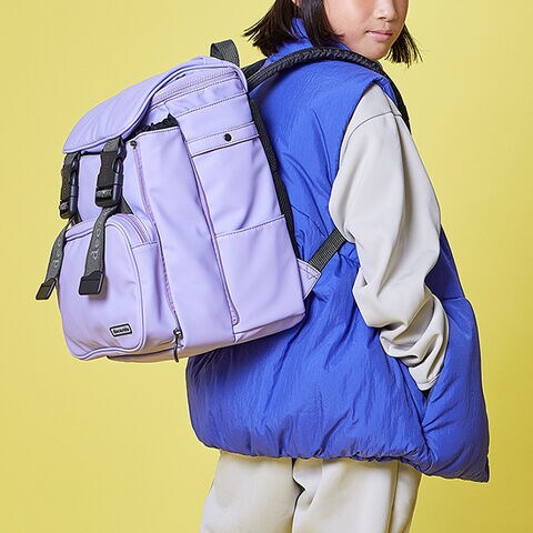 ・落ち着きと可愛らしさを兼ね備えたペールカラーのバックパック。