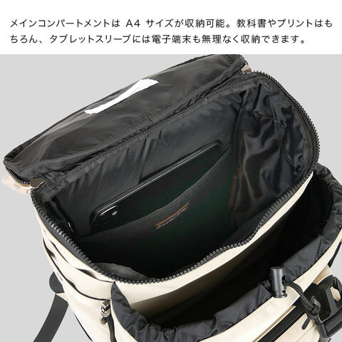 ・A4対応のメイン収納とタブレットスリーブを備え、教科書や学習用端末も収納可能。