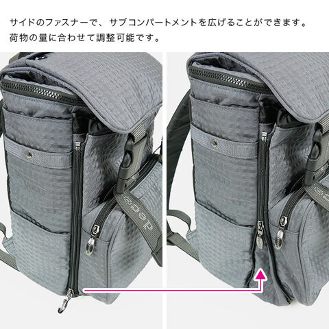 【サイズ(約)】W24×H32×D12(18)cm ※D(奥行き)は、サイドファスナーの開閉で容量が増減することにより変動します。