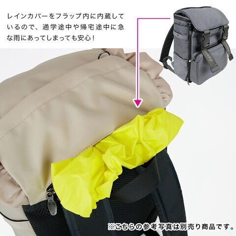 ・レインカバー内蔵で急な雨にも対応し、クッション入りの背面とショルダーベルトで背負いやすさにも配慮。