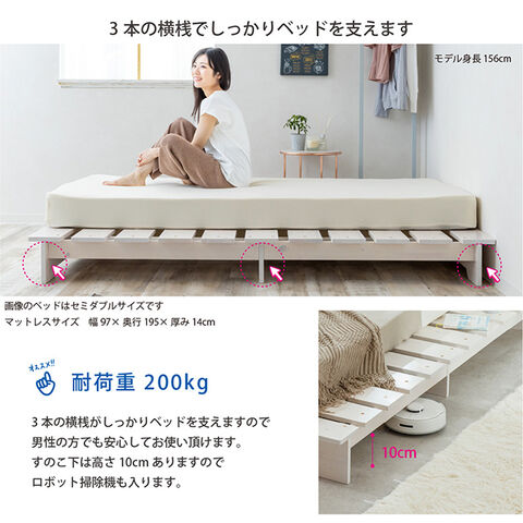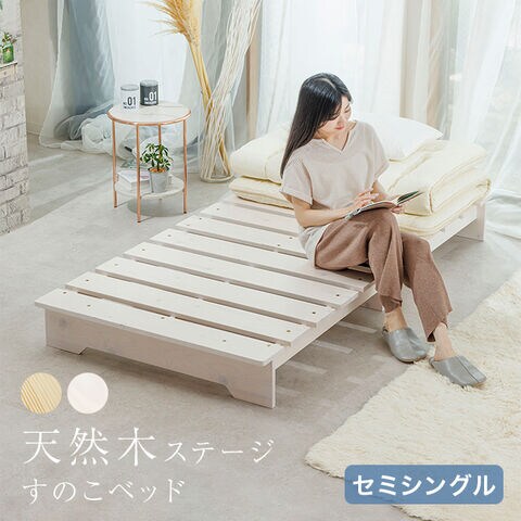 メーカー直送 【ナチュラル】 【R】 天然木ステージすのこベッド セミシングルサイズ SS(ベッド すのこ フレーム セミシングル 一人暮らし) ※1枚目の画像は代表イメージのため色・柄が異なる場合がございます。2枚目以降で色・柄をご確認下さい。