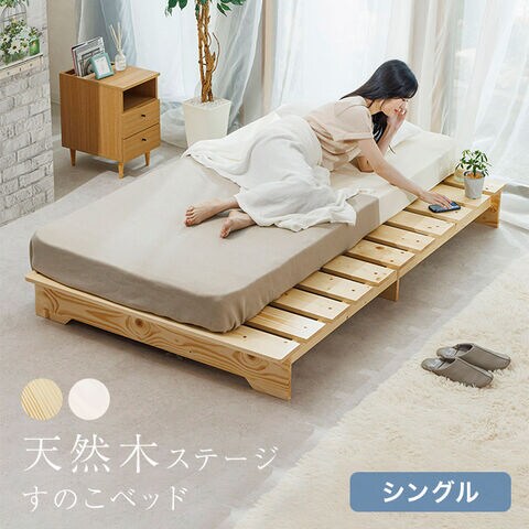 メーカー直送 【ナチュラル】 【R】 天然木ステージすのこベッド シングルサイズ S(ベッド すのこ フレーム シングル 一人暮らし) ※1枚目の画像は代表イメージのため色・柄が異なる場合がございます。2枚目以降で色・柄をご確認下さい。