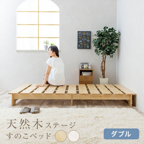 メーカー直送 【ナチュラル】 【R】 天然木ステージすのこベッド ダブルサイズ D(ベッド すのこ フレーム ダブル 2人用 ベッドフレーム) ※1枚目の画像は代表イメージのため色・柄が異なる場合がございます。2枚目以降で色・柄をご確認下さい。