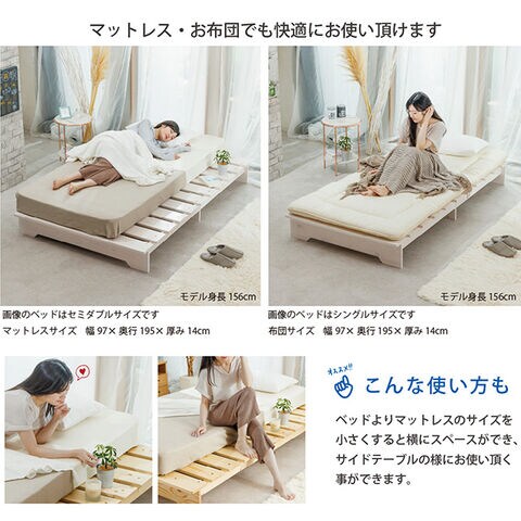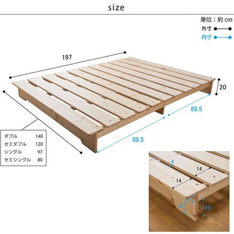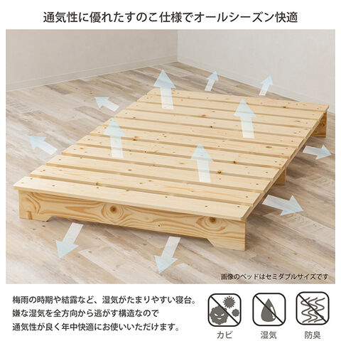 ・床板には天然木パイン材のすのこ構造を採用。湿気がこもりにくく、季節を問わず快適に使用できます。