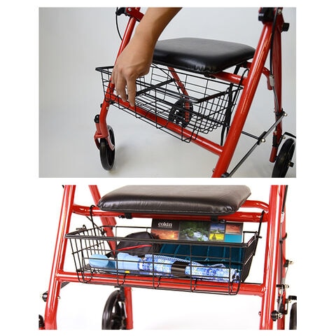 お散歩中に疲れたら気軽に座ることができ、お買いもので荷物が増えても備え付けのカゴに収納しておくことができます。