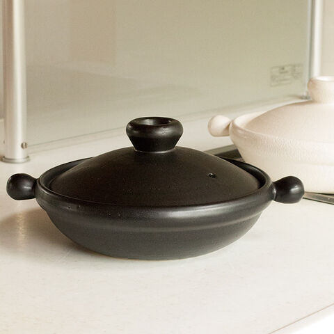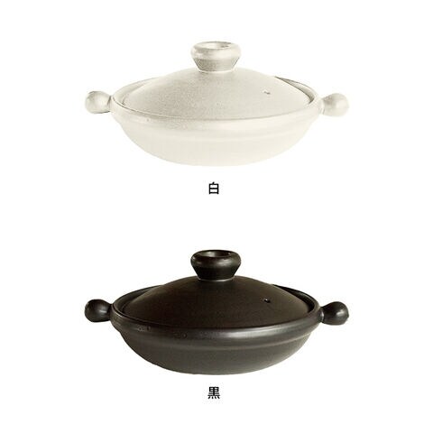 萬古焼 土鍋 7号 浅型 1人用 2人用 1~2人用 ガス 直火 日本製 自宅 贈り物 ギフト 鍋料理 キッチン食卓 和モダン おしゃれ 黒 白