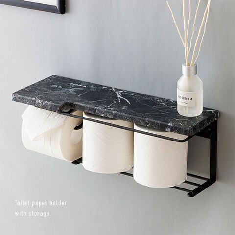 トイレットペーパーホルダー ストックタイプ ブラック大理石柄(トイレットペーパー ホルダー 予備 トイレット)